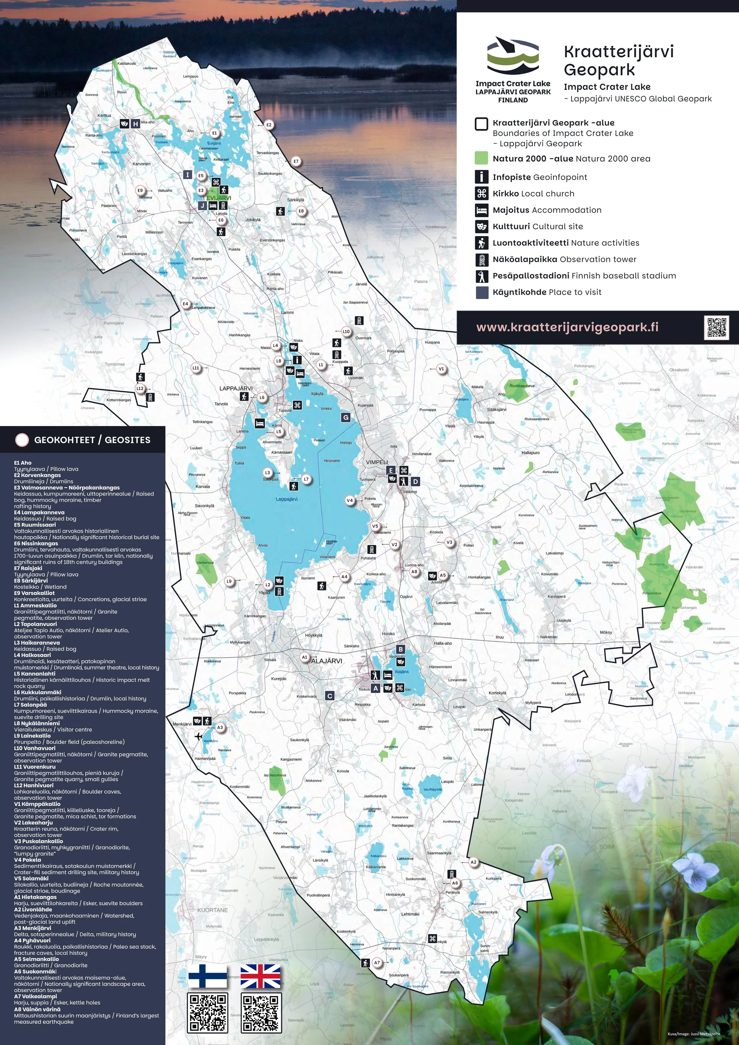 Der Geologiepfad um den Kratersee wurde in seiner derzeitigen Form vom Geologen Dr. Teemu Öhman in Zusammenarbeit mit dem Geologischen Forschungszentrum erstellt. Es handelt sich um einen geologischen Naturpfad, der um den gröβten Kratersee Europas, - den Lappajärvi-See -, herumführt. Anhand der Etappen des Pfades wird auf vielfältige Weise die Geologie der Landschaftsformen und des Grundgesteins vorgestellt. In kurzen Abschnitten wird auch die Geschichte der Region beleuchtet.